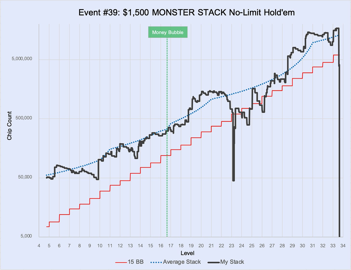 Near-misses soften the blow, but only a little. They can be fun, however, and the highlight of my trip was undoubtedly the $1,500 Monster Stack event, in which I finished in 32nd place out of 8,317 entrants for roughly $37,000. I’ve generally avoided these super-duper large weekend events at the WSOP: They’re crowded and slow, and you have to survive a long time to make real money from them.