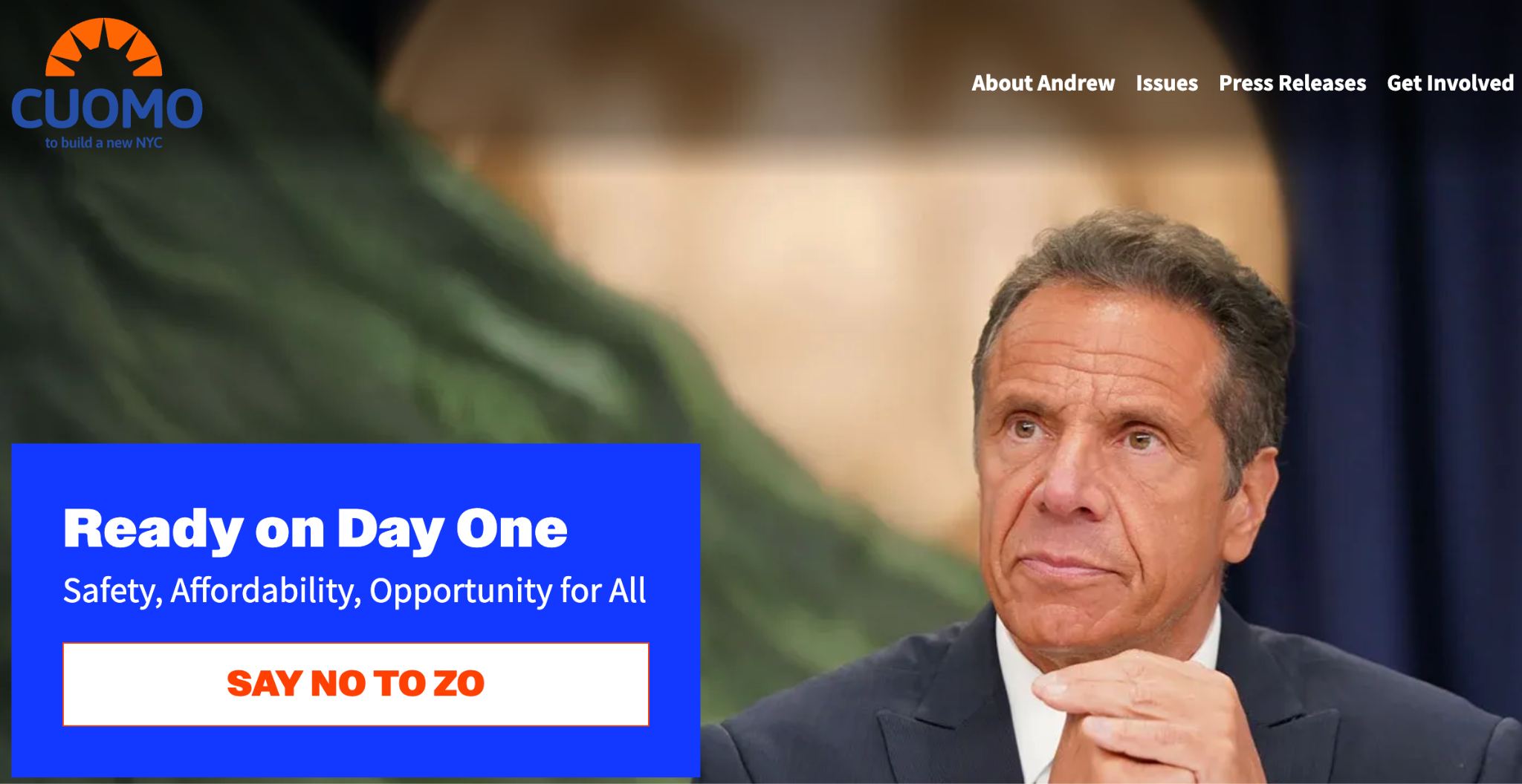 Meanwhile, if you go to Cuomo’s website, the lead message is “Say No to Zo”: