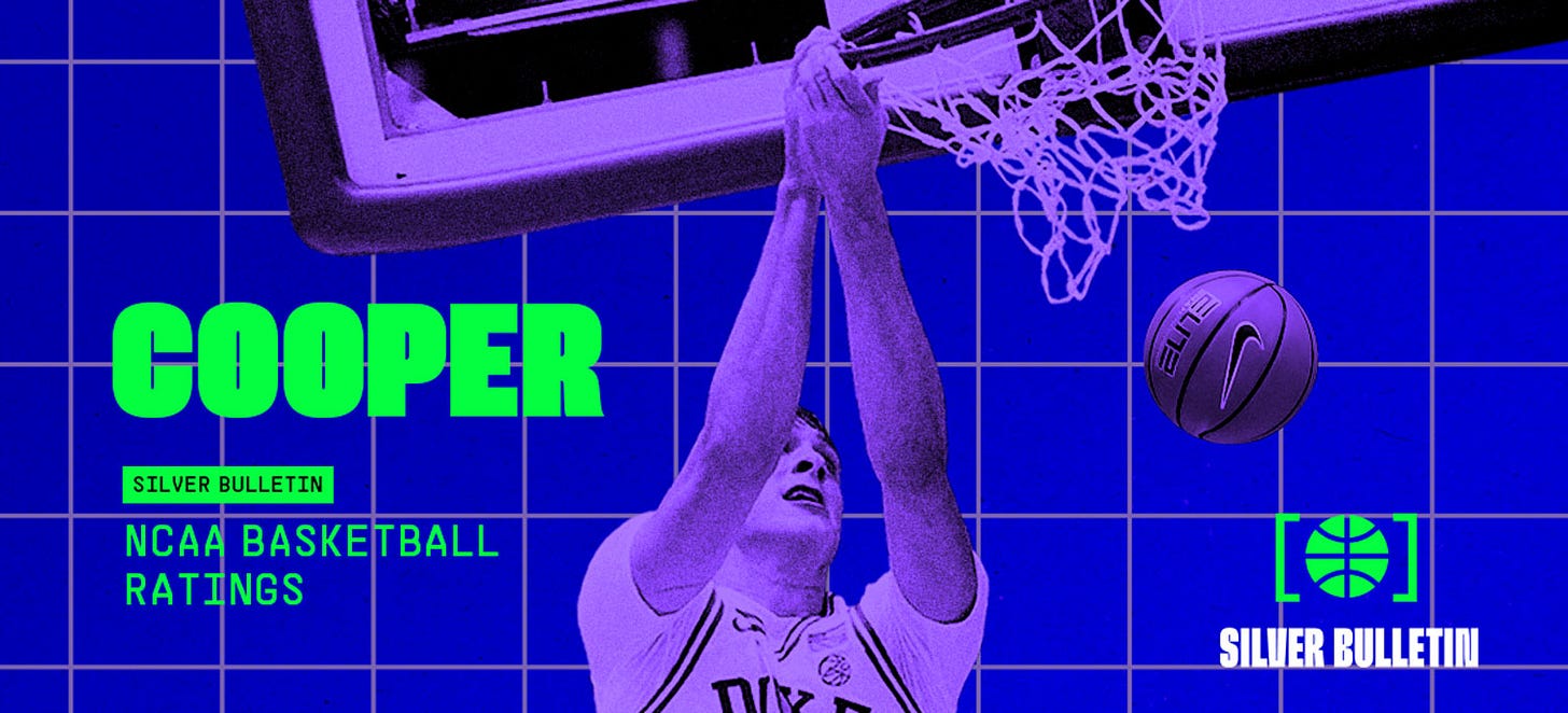 This is the homepage for COOPER, Silver Bulletin’s new NCAA basketball rating system. Named in honor of Cooper Flagg and Cynthia Cooper, it accounts for wins and losses, margin of victory, team tempo1, preseason polls and conference strength. Ratings partly carry over from season to season, but COOPER uses an “impact factor” that weights results from recent games, close matchups, conference games, and NCAA tournament games more heavily.