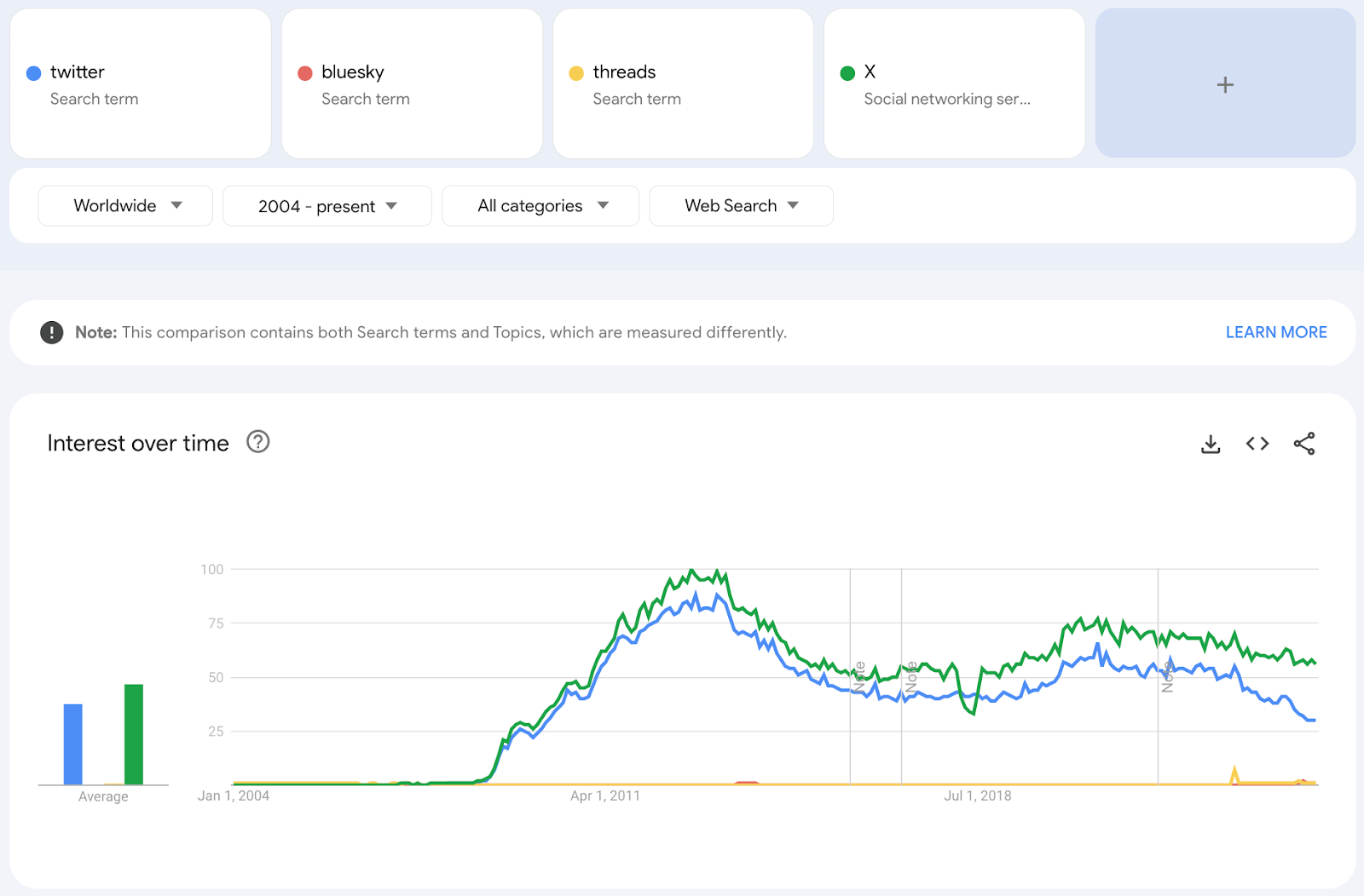 My point is simply that there are good — indeed, often superior — substitutes for some of the use cases that Twitter or any other microblogging service provides — if not for everything. At the very least, X is not on a growth trajectory to becoming the “Everything App” or really on a growth trajectory at all. But other platforms have not gained influence as fast as Twitter has lost it.